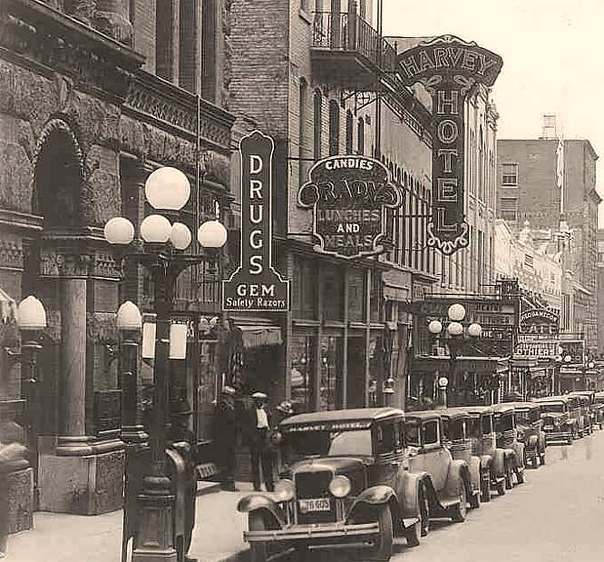 toward the Harvey Hotel, early 1950s.
